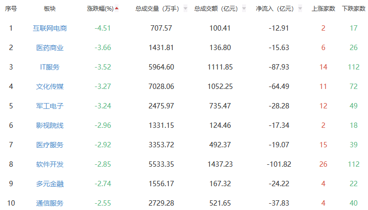 行业板块方面,贵金属、电子化学品、农化成品等板块涨幅居前,互联网电商、医药贸易、IT干事等板块跌幅居前。
