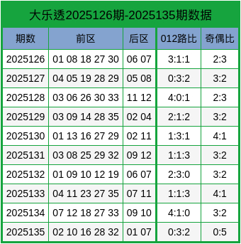 大乐透第25135期开出奖号:前区02、10、16、28、32;后区01、07。其中前区012路比为0:3:2天元证券--致力于打造全国领先实盘配资平台!,奇偶比0:5,后区四分区开出1区+3区号码。