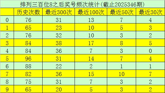 第一位杀号:上期第一位奖号为8,第一位奖号8历史上出现792次,前100次该位开出奖号8之后,下期号码0-9出现次数从高到底永别为:号码3→17次,7→15次,5→14次,0→13次,1、2→10次,4、8→7次,9→5次,6→2次。
