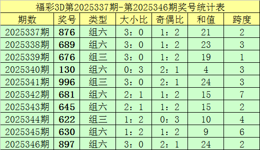 其中大小比3:0,奇偶比2:1,和值24,跨度2。